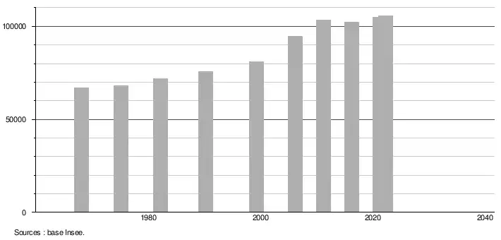 - ↑ Population municipale de référence en vigueur au 1er janvier 2025, millésimée 2022, définie dans les limites territoriales en vigueur au 1er janvier 2024, date de référence statistique : 1er janvier 2022.