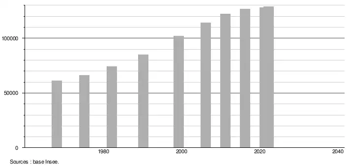 - ↑ Population municipale de référence en vigueur au 1er janvier 2025, millésimée 2022, définie dans les limites territoriales en vigueur au 1er janvier 2024, date de référence statistique : 1er janvier 2022.