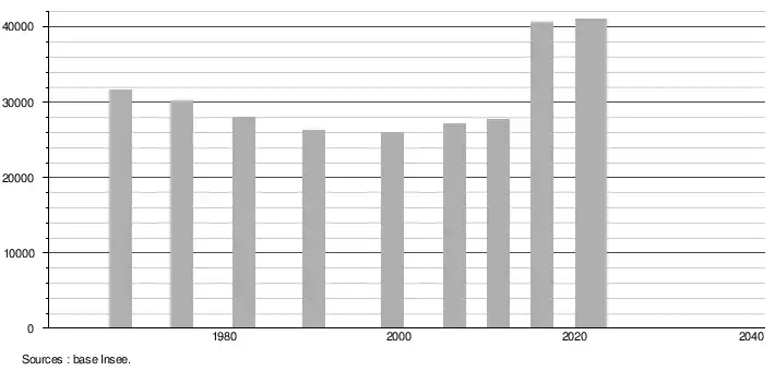 (Sources : Base Insee, population sans doubles comptes à partir de 1962[13] puis population municipale à partir de 2006[14].)