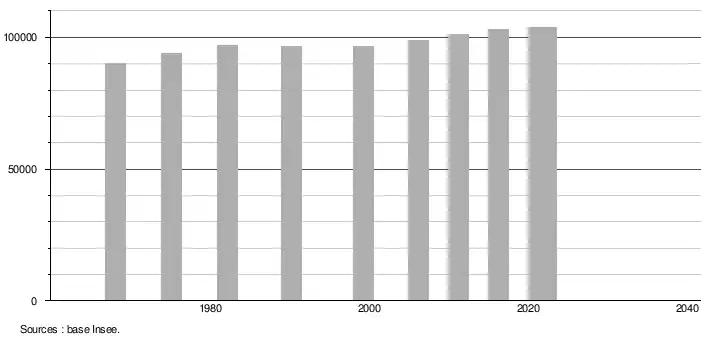 - ↑ Population selon le sexe et l'âge quinquennal de 1968 à 2013 - Recensements harmonisés - Séries départementales et communales