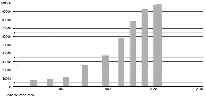 (Sources : Base Insee, population sans doubles comptes à partir de 1962[3] puis population municipale à partir de 2006[4].)
