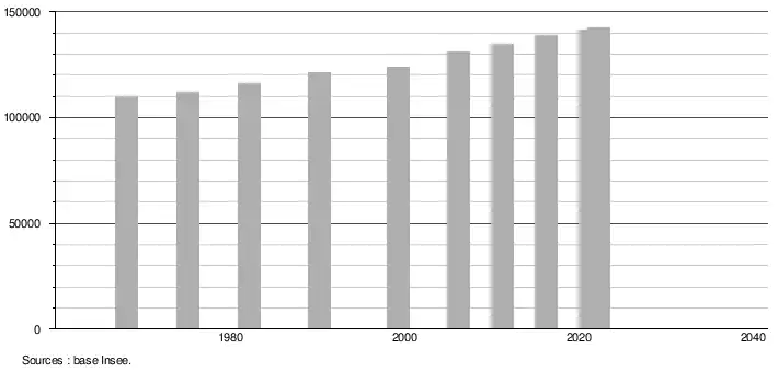 - ↑ Population municipale de référence en vigueur au 1er janvier 2025, millésimée 2022, définie dans les limites territoriales en vigueur au 1er janvier 2024, date de référence statistique : 1er janvier 2022.