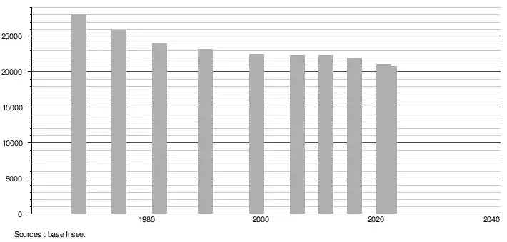 - ↑ Population selon le sexe et l'âge quinquennal de 1968 à 2013 - Recensements harmonisés - Séries départementales et communales