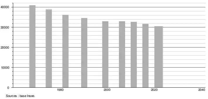 - ↑ Population selon le sexe et l'âge quinquennal de 1968 à 2013 - Recensements harmonisés - Séries départementales et communales