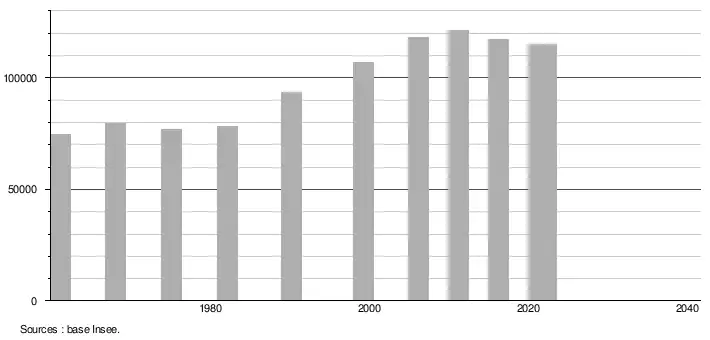 (Sources : Base Insee, population sans doubles comptes à partir de 1962[3] puis population municipale à partir de 2006[4].)