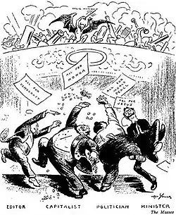 Arthur Henry « Art » Young, né à Orangeville, Illinois le et mort à New York, État de New York le , est un dessinateur de presse humoristique et satirique américain. Après des études de beaux-arts, Art Young collabore à plusieurs journaux politiques socialistes, il dessine notamment pour le journal The Masses, entre 1911 et 1917. Bien qu'engagé politiquement, ses dessins se sont hissés dans la culture populaire du dessin satirique américain[2].