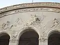 On note que l'architecte a introduit des frises de faïences d'inspiration locale dans la partie supérieure des bâtiments[4].