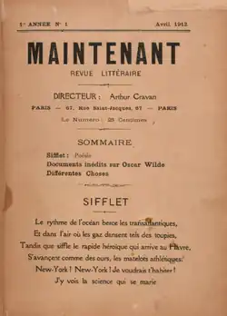 Arthur Cravan est le directeur de publication et le principal rédacteur de cette revue qui compte cinq livraisons entre et .