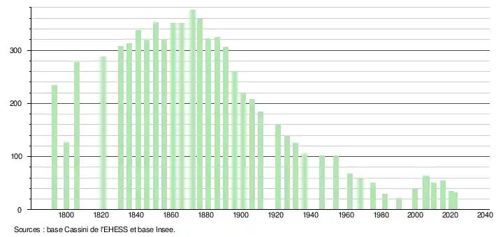 - ↑ Fiches Insee - Populations de référence de la commune pour les années 2006, 2007, 2008, 2009, 2010, 2011, 2012, 2013, 2014, 2015, 2016, 2017, 2018, 2019, 2020, 2021 et 2022.