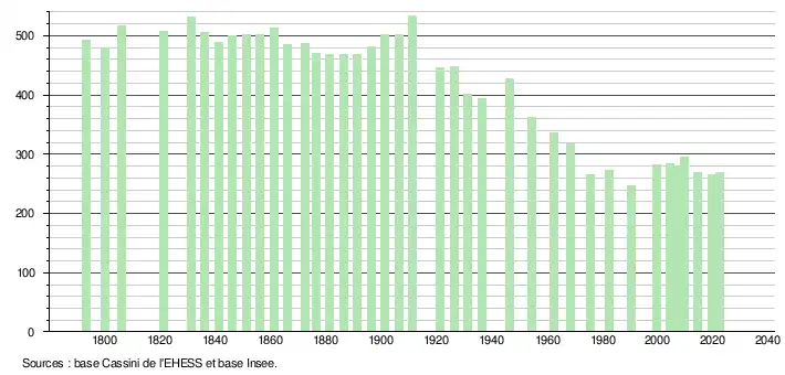 269 hab. (2022 en évolution de +1,89 % par rapport à 2016)