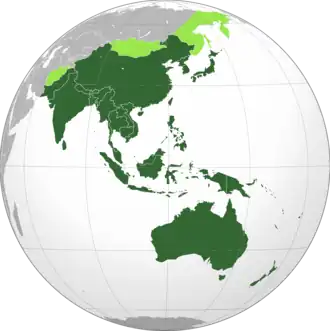 L'Asie-Pacifique peut également inclure la Russie (dans le Pacifique Nord), et des pays de l'Organisation des États américains (OEA), sur la côte est de l'Océan Pacifique.