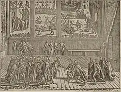 Les premières estampes sont issues de graveurs allemands (Conrad Cordoys[53], Wilhelm Potter Zwenerman), flamands (tels que Gaspar Bouttats (en) ou les frères Caspar et Jan Luyken) et espagnols. Ces estampes sont plus abondantes à partir de la fin du XVIIe siècle, soit plusieurs dizaines d'années après l'événement[54].