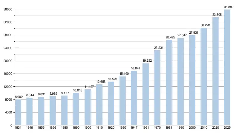 - Source : DGS, de 1831 à 1981 = recensements population ; à partir de 1990 = nombre d'habitants chaque 1er janvier.[10]