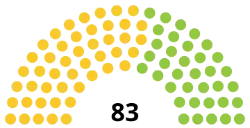 - ↑ Le mandat des députés élus lors des élections législatives de 2023 est de trois ans.
