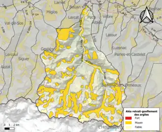 - ↑ « Dossier départemental des risques majeurs (DDRM) de l'Ariège » [PDF], sur le site de la préfecture, (consulté le ), chapitre Mouvements de terrain.