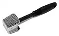 - les plus courants sont une sorte de marteau ou maillet, en métal ou en bois, à manche court et dont la tête comporte deux faces, l'une plate et l'autre munie de picots attendrisseurs en forme de pyramides ;