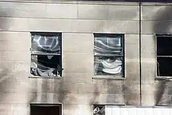 Dans un rayon de cent trente mètres environ, quantité de vitres des immeubles furent détruites par l'onde de choc produite par la destruction des tours jumelles.