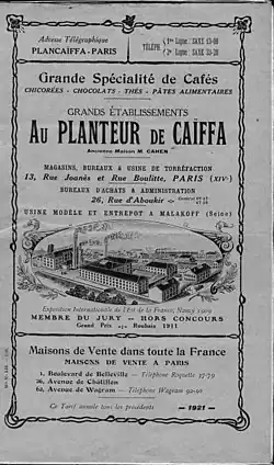 La société Au Planteur de Caïffa est fondée en 1890 par Michel Cahen et sa femme. Au départ simple torréfacteur, vendant toute une gamme de café, Michel Cahen transforme son magasin en épicerie. Il ouvre deux autres magasins, puis de nombreux autres en province. Il reste spécialiste du café.