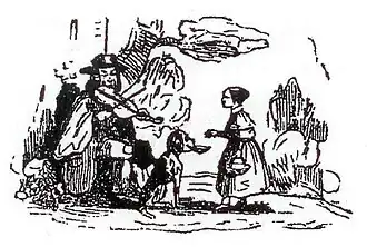 - ↑ Ce musicien et violoneux des rues vendait les cahiers des chansons qu'il interprétait. Ainsi l'acheteur apprenait l'air même s'il ne savait pas lire la musique.