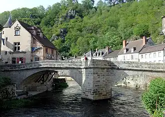 Arrosée par la Creuse et la Beauze, son affluent, la ville est traversée par l'ancienne N 141 (Clermont-Limoges-Saintes).