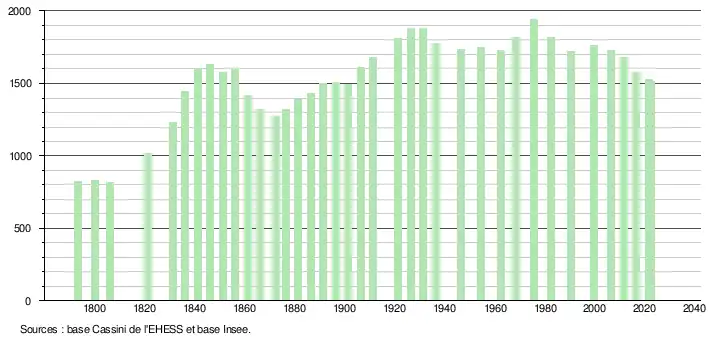 - ↑ Fiches Insee - Populations de référence de la commune pour les années 2006, 2007, 2008, 2009, 2010, 2011, 2012, 2013, 2014, 2015, 2016, 2017, 2018, 2019, 2020, 2021 et 2022.