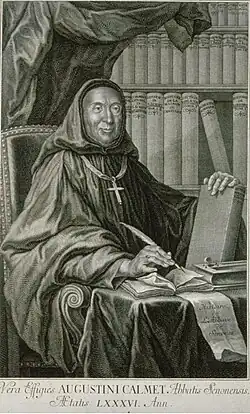 Augustin Calmet, connu sous le nom de Dom Calmet, né le à Ménil-la-Horgne et mort le à Senones, est un exégète et érudit lorrain, bénédictin de la congrégation de Saint-Vanne et Saint-Hydulphe.