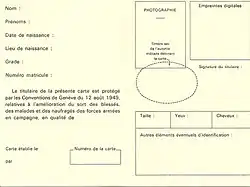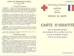| Brassard de neutralité | Modèle français de carte d'identité sanitaire (extérieur) | Modèle français de carte d'identité sanitaire (intérieur) |