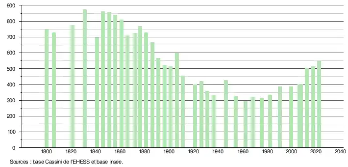- ↑ Fiches Insee - Populations de référence de la commune pour les années 2006, 2007, 2008, 2009, 2010, 2011, 2012, 2013, 2014, 2015, 2016, 2017, 2018, 2019, 2020, 2021 et 2022.