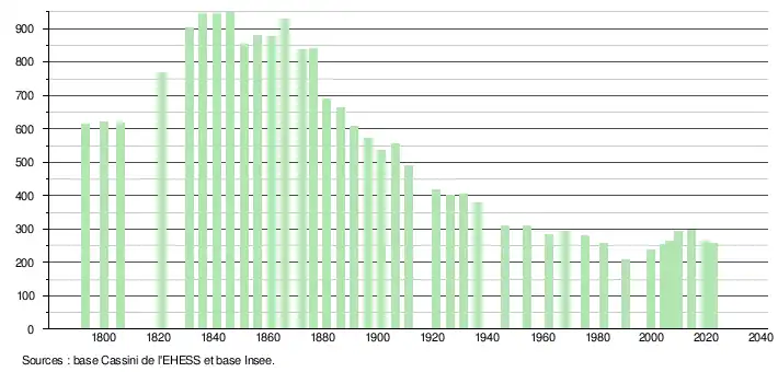 - ↑ Population municipale de référence en vigueur au 1er janvier 2025, millésimée 2022, définie dans les limites territoriales en vigueur au 1er janvier 2024, date de référence statistique : 1er janvier 2022.