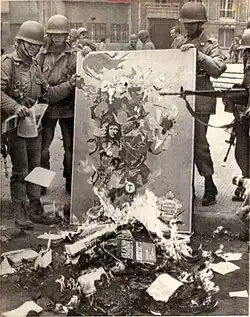À la suite du coup, les militaires entreprennent des raids pour débusquer de potentiels opposants au régime : tandis que certains sont emprisonnés, d'autres sont exécutés à l'Estadio Nacional de Chile, notamment. Par ailleurs, lors de ces raids, les militaires récupèrent et brûlent de nombreux livres : pas seulement concernant de la littérature marxiste, mais également de la littérature sociologique générale, des journaux et des magazines[5]. Ils étaient en plus retirés des librairies et des bibliothèques[2].