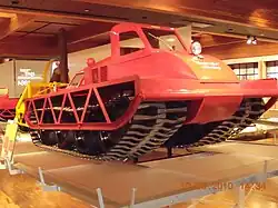 De tous ces véhicules, le tracteur Muskeg[17], marécage en amérindien, est la plus grande réussite de ces années-là. Ce tracteur se démarque par ses chenilles larges à double roue et faible pression au sol qui lui donne accès aux terrains marécageux; cette chenille double a été développée vers 1942 pour la chenillette de reconnaissance Mark I commandée par l'armée canadienne[18]. En 1950, la chenille large à double roue est modifiée pour une série de camions semi-chenillé Bombardier TD qui sont expédiés en Alberta pour l'exploration pétrolière. Le Muskeg est produit à Valcourt en 1953 et remporte un grand succès commercial, répondant à de multiples besoins de travaux et de transport en terrains difficiles. On l’utilisera autant dans les Alpes pour le transport de skieurs, que dans le Sahara pour le dégagement des routes. En versions modifiées, le tracteur Muskeg se vend encore aujourd’hui dans tous les coins du monde.