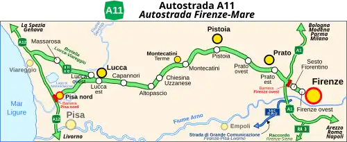 L'autoroute italienne A11, située intégralement sur le territoire de la région de Toscane, autoroute dite de Florence à la mer (Firenze-Mare), est historiquement la seconde autoroute italienne construite sous le régime fasciste après l'Autoroute des Lacs entre 1928 et 1932.