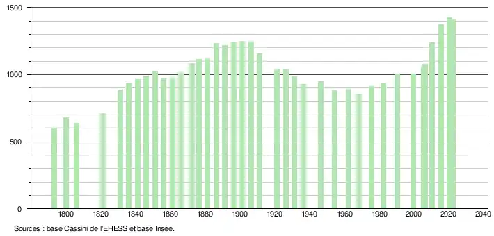 1 408 hab. (2022 en évolution de +0,57 % par rapport à 2016)