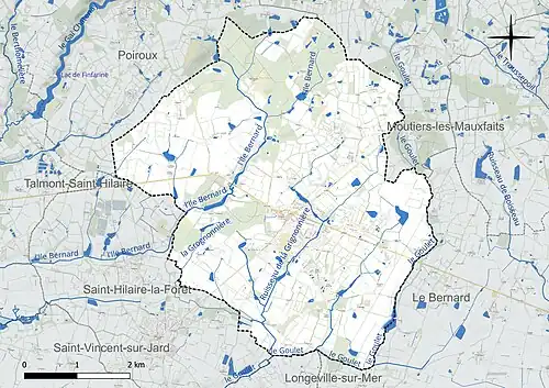 Les communes limitrophes sont Le Bernard, Longeville-sur-Mer, Poiroux, Saint-Avaugourd-des-Landes et Saint-Hilaire-la-Forêt.