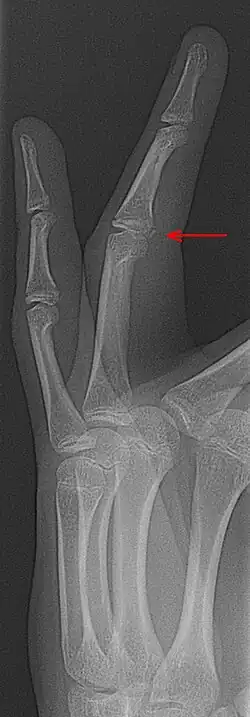 La « fracture-avulsion »[1] est une fracture avec déplacement de fragment osseux ou cartilagineux [2], l'os pouvant être arraché par une tension trop importante d'un ligament, par exemple au niveau du coude ou du genou (patella...)[3].