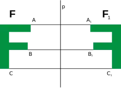 Par rapport à d, deux figures du plan sont dites symétriques lorsque l'une est l'image de l'autre par cette application, et une figure est dite symétrique lorsqu'elle est symétrique d'elle-même, c'est-à-dire globalement invariante par cette transformation. La droite d est alors dite axe de symétrie de la figure.