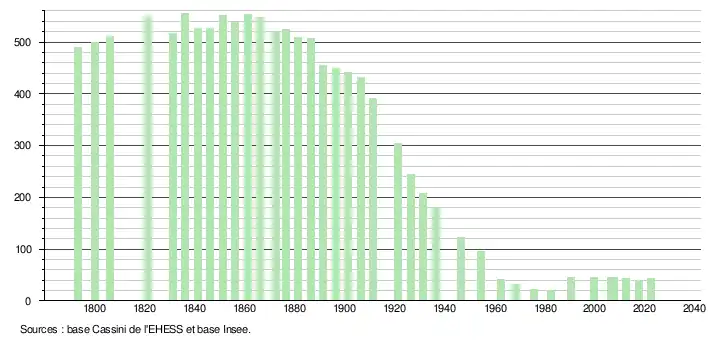 - ↑ Fiches Insee - Populations de référence de la commune pour les années 2006, 2007, 2008, 2009, 2010, 2011, 2012, 2013, 2014, 2015, 2016, 2017, 2018, 2019, 2020, 2021 et 2022.