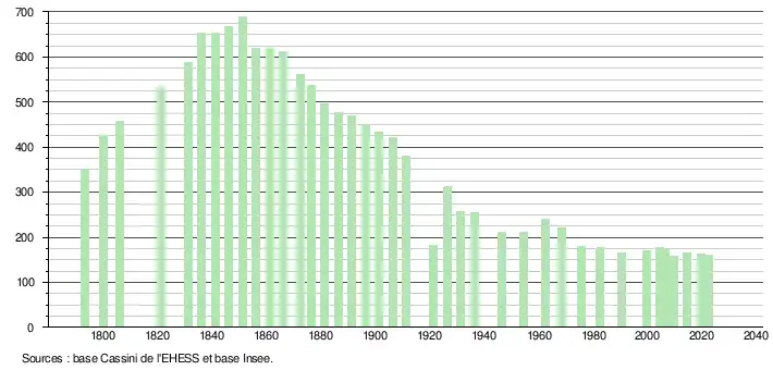 (Sources : Ldh/EHESS/Cassini jusqu'en 1999[28] puis Insee à partir de 2006[29].)