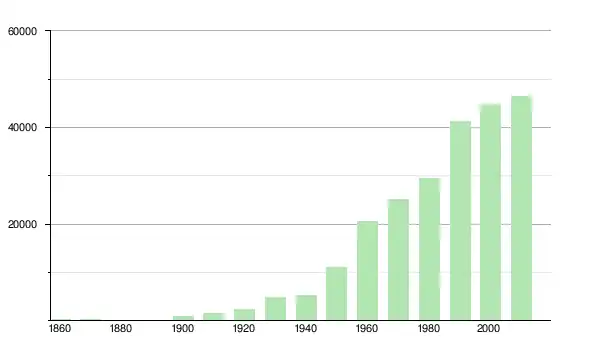 | 1960 | 20 497 | ▲ +85,63 % | |