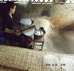 La pâte de farine de riz est étalée avec le dos d'une louche sur une étamine disposée au-dessus d'un chaudron d'eau bouillante pour une première cuisson à la vapeur. Les galettes sont ensuite posées sur un tamis pour mise en séchage. Elles sont alors éventuellement mises à griller sur un lit de charbon de bois pour une deuxième cuisson, puis empaquetées et vendues dans le commerce local.
