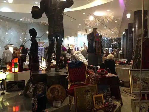 L'aménagement du rez-de-chaussée de la rue Zmaj Jovina a été réalisé selon le projet de l'architecte Branislav Jovin[2]. La galerie d'art Progres, ouverte en 1996 à l'emplacement de l'ancienne galerie Sebastijan, occupe une superficie de 530 m2, au rez-de-chaussée et dans une partie du sous-sol du bâtiment[2],[7]. L'entrée principale de la galerie, rue Knez Mihailova est mise en valeur par une sculpture en bronze du dieu Mercure sur un piédestal rotatif, œuvre de l'artiste Olja Ivanjicki, le membre le plus important du groupe d'art Medijala, dont l'exposition a inauguré la galerie en 1997[2],[7]. Le rez-de-chaussée où se trouve la galerie est entièrement en verre, de sorte que le contenu de l'exposition est entièrement visible[2]. La galerie expose des œuvres relevant des beaux-arts traditionnels (peinture, sculpture, architecture, graphisme et dessins) mais aussi des photographies, du design, des installations, des vidéos et d'autres formes d'expression modernes[7]. Le reste du bâtiment sert de siège social à la société Progres, une société engagée dans le commerce national et international, qui pratique l'intermédiation financière et le conseil[8] ; la société est cotée à la Bourse de Belgrade[9].