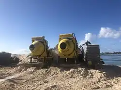 - la seconde est trois fois plus petite mais mobile ; dans un premier temps elle est installée à Villejuif (Val-de-Marne), couvrant 1 500 m2 au sol, stockant jusqu'à 1 200 tonnes de granulats et 600 t de ciment, pour une capacité de 400 m3/jour de béton (70 000 t/an). Des bassins agités traitent les eaux alcalines de lavage (pour produire des matériaux ou pour le lavage des camions)[2].