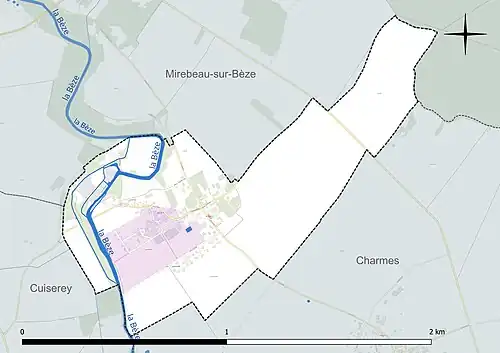 Les communes limitrophes sont Charmes, Cuiserey et Mirebeau-sur-Bèze.