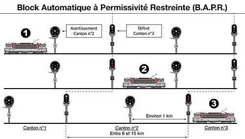 Il est dérivé du block automatique lumineux (BAL) dont il reprend le principe général : découpage de la voie en cantons, signaux de voie libre, d'avertissement et d'arrêt (sémaphore et parfois carré). Cependant, afin de diminuer le coût des installations et leur complexité, la longueur des cantons est comprise, par principe, entre 6 et 15 km au lieu de 3 km maximum en BAL. Le BAPR est interrompu à la traversée des gares dans lesquelles le BAL est toujours mis en œuvre, sauf dans le cas où il est fait appel à des compteurs d'essieux au lieu de circuits de voie[2].