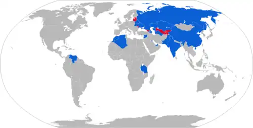 Liste des utilisateurs des systèmes Smertch en 2000, 2012, 2023 et 2025, cette liste contient les variantes Biélorusse, Chinoise et Ukrainienne[28],[29],[30].