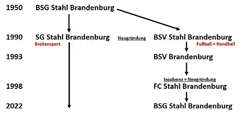 BSV Stahl Brandebourg (1990-1993) BSV Brandebourg (1993-1998) FC Stahl Brandebourg (1998-2022) |