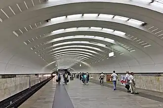 Elle est conçue et réalisée, par les ingénieurs : E.Kobzeva, P.Vasilev, et les architectes : V.I.Klokov et L.N.Popov. C'est une station peu profonde construite suivant un modèle standard à voute. Sur le thème de l'exploration de l'Arctique sa finition est composée : de marbre gris sur les murs, de pavés en granit gris et noir sur le sol et des luminaires sont disposés dans des fentes sur l'arc elliptique de la voute. Une sculpture due à l'artiste A.M.Mosiychuk est placée à l'extrémité du quai au dessus de la sortie[3].