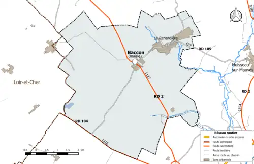 Au , Baccon est catégorisée commune rurale à habitat dispersé, selon la nouvelle grille communale de densité à sept niveaux définie par l'Insee en 2022[35]. Elle est située hors unité urbaine[36]. Par ailleurs la commune fait partie de l'aire d'attraction d'Orléans, dont elle est une commune de la couronne[Note 2],[36]. Cette aire, qui regroupe 136 communes, est catégorisée dans les aires de 200 000 à moins de 700 000 habitants[37],[38].
