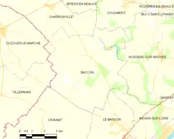 Carte de la commune de Baccon et des communes limitrophes.