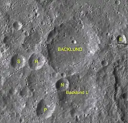 Backlund est un cratère d'impact sur la face cachée de la Lune. Le nom fut officiellement adopté par l'Union astronomique internationale (UAI) en 1970[4],[2],[3], en référence à Oskar Backlund (1846-1916)[1],[2],[3].